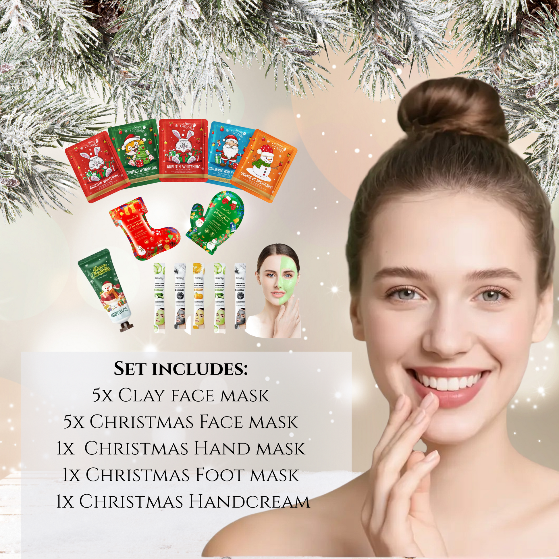 - 5x Festive Glow Face Masks: Infused with delightful holiday scents and nourishing ingredients to hydrate and brighten your skin.