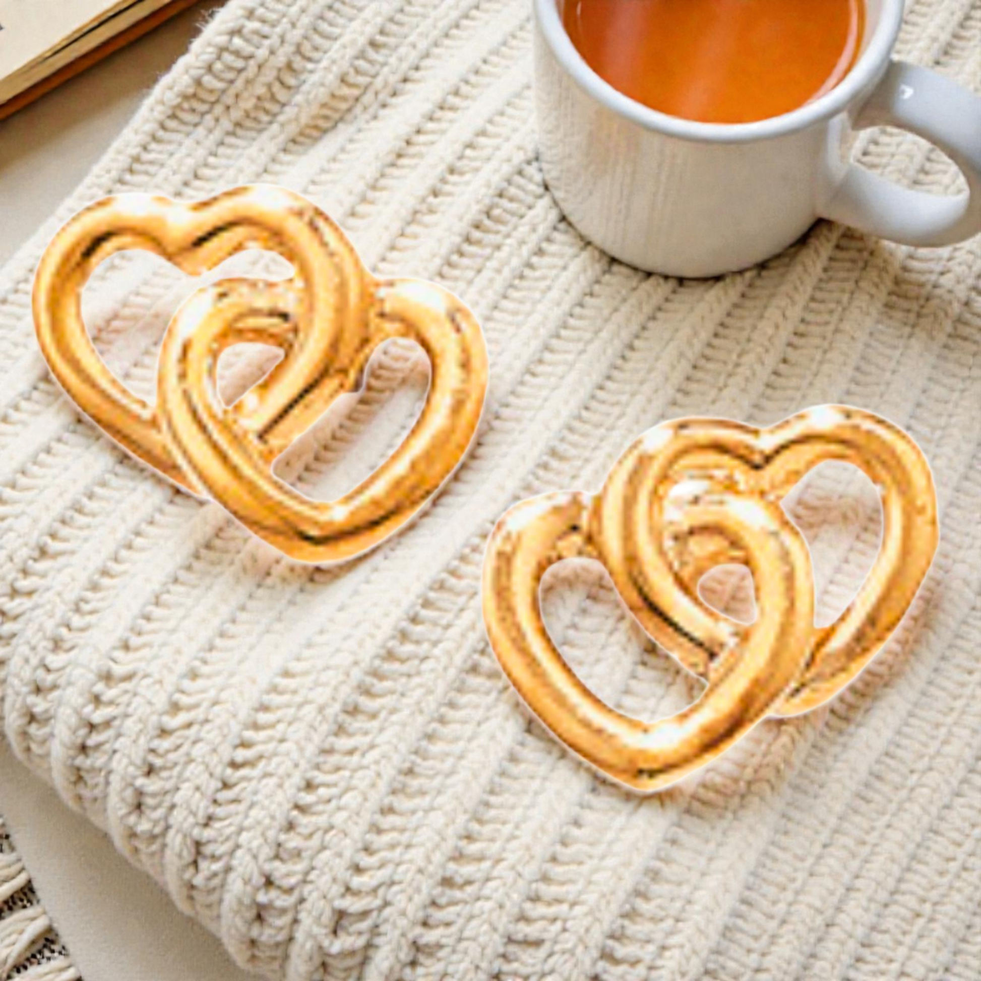 9ct Gold Interlocking Double Heart Stud Earrings 375 Hallmarked for Women