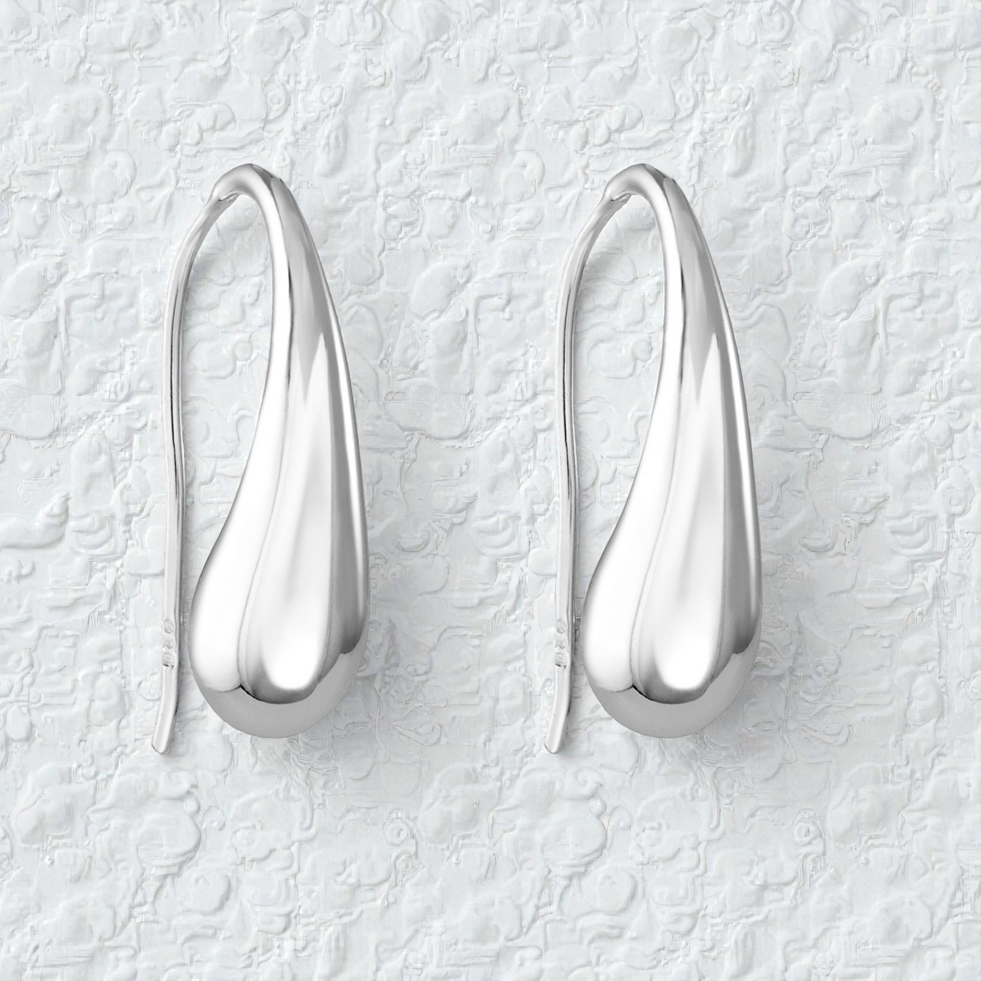 These minimalist teardrop drop earrings offer a sleek, contemporary look with timeless appeal. Crafted from S925 sterling silver, they feature a smooth, high-shine finish that reflects light beautifully. This adds subtle sophistication to any outfit. Perfect for refined everyday wear or understated evening styling, these earrings are an ideal staple.
