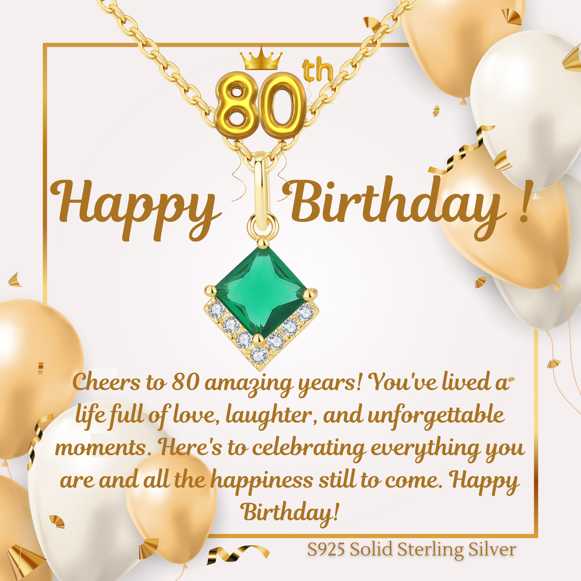 Birthday Gifts for Her 30th 40th 50th 60th 70th 80th 90th 100th S925 Emerald Gold Plated Necklace Birthday Personalised Message