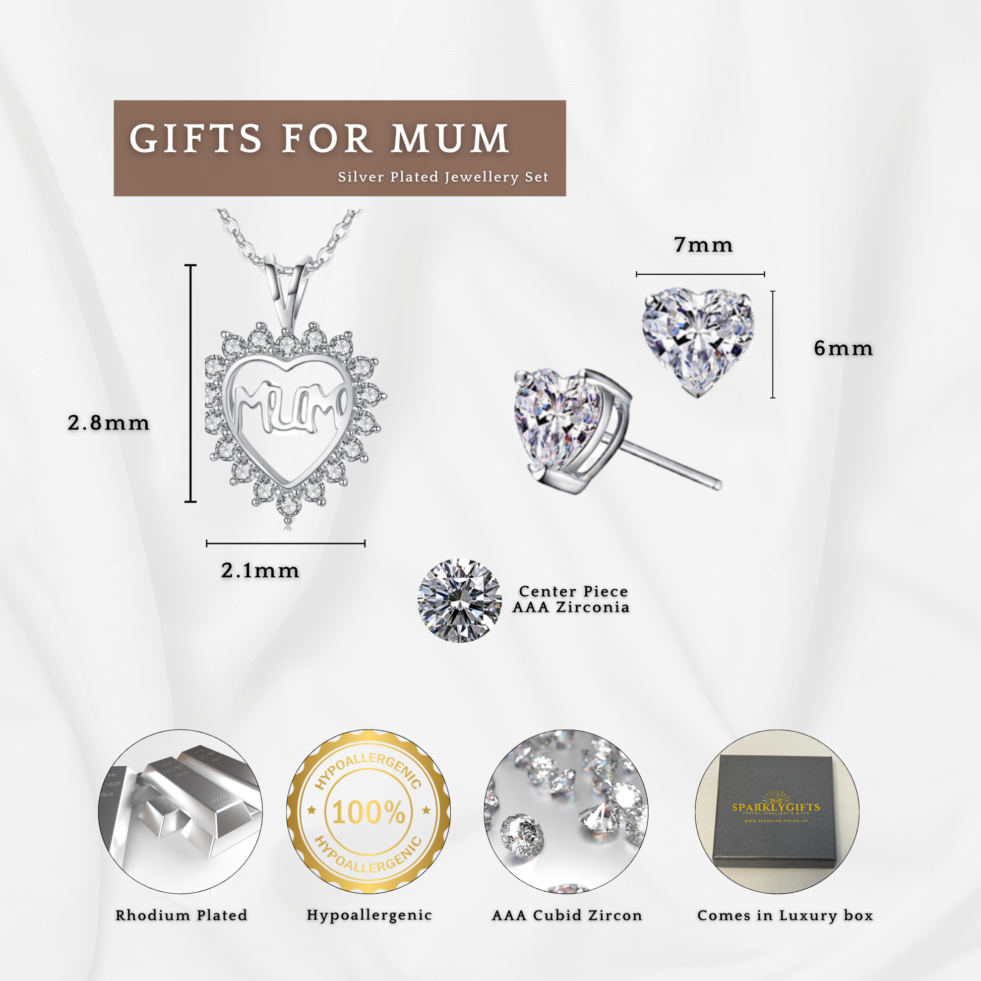 Ready to Gift: No wrapping required! The set comes complete with a premium jewellery box, a stylish gift bag, and a cleaning cloth to keep her sparkle bright.
