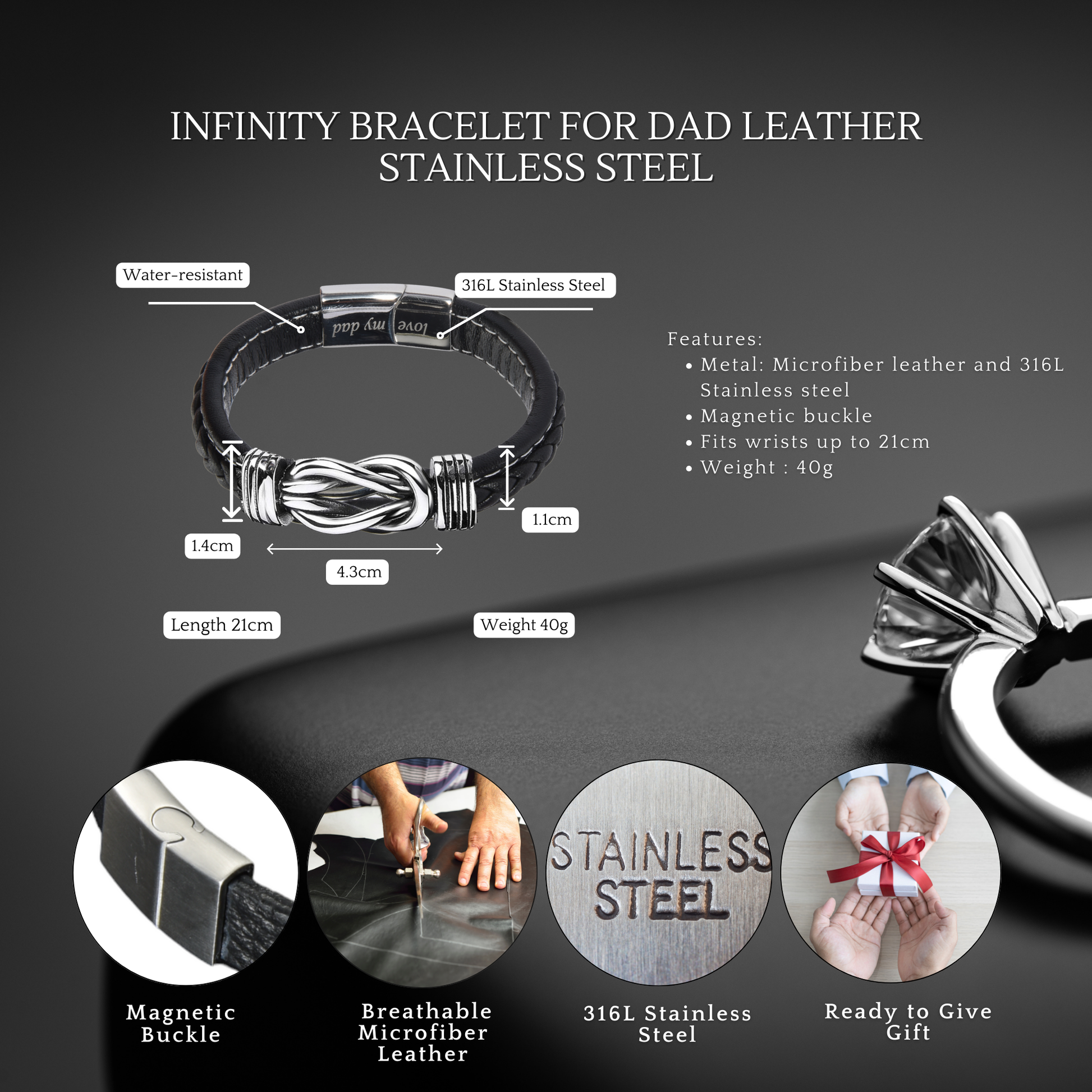 Stainless Steel Infinity Bracelet For Dad Engraved Leather with Personalised Message