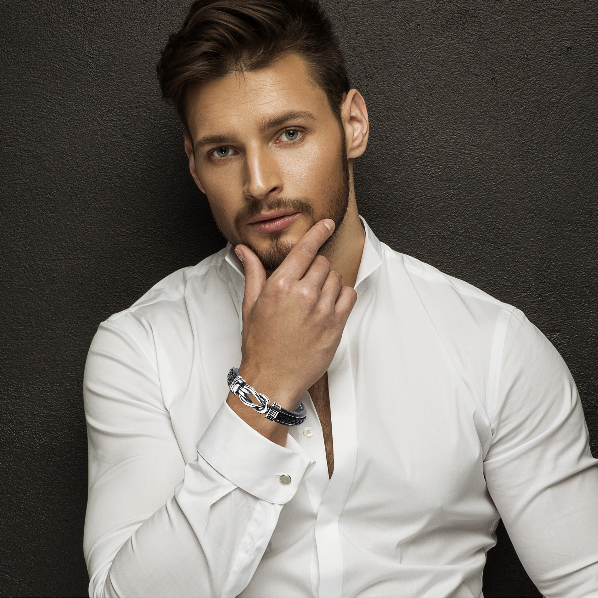 - Quality He Can Feel: Crafted from Microfiber leather for comfortable all-day wear and accented with durable, polished stainless steel for a touch of modern elegance. The contrasting textures and tones create a sophisticated look he'll be proud to wear every day.