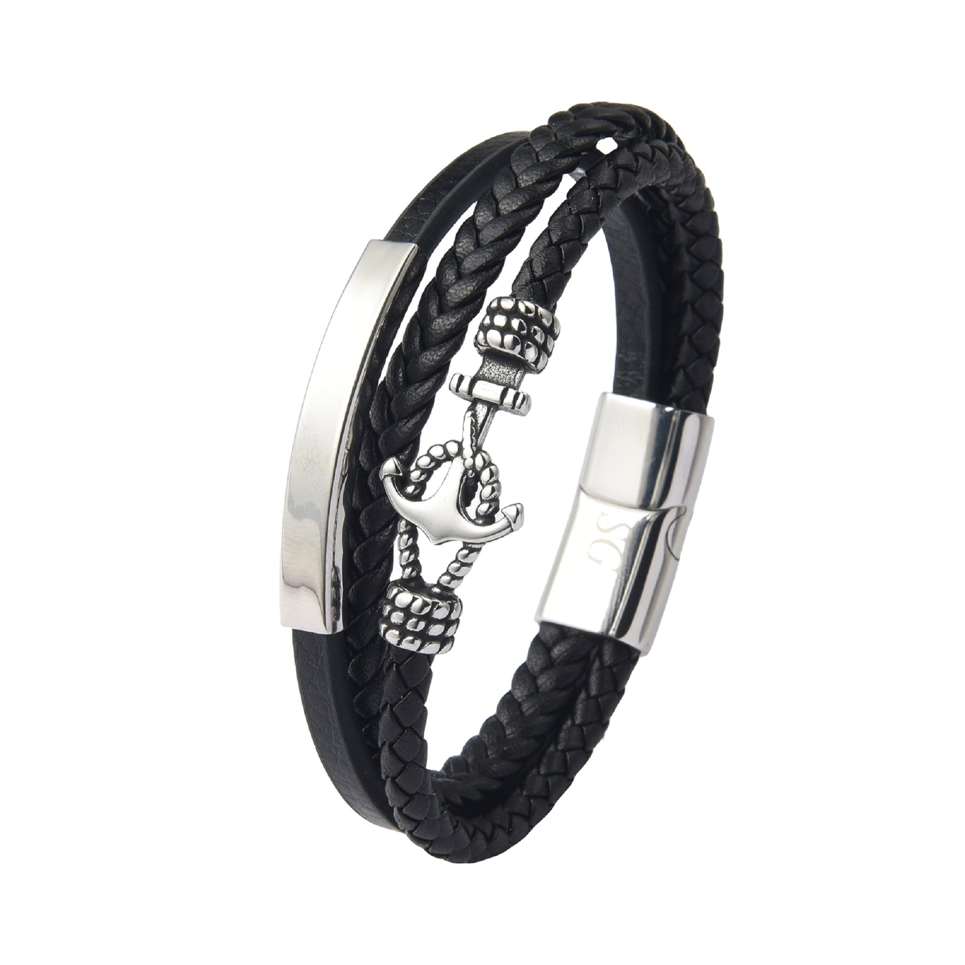 Stainless Steel Leather Anchor Bracelet Engraved for Husband Valentine's Day