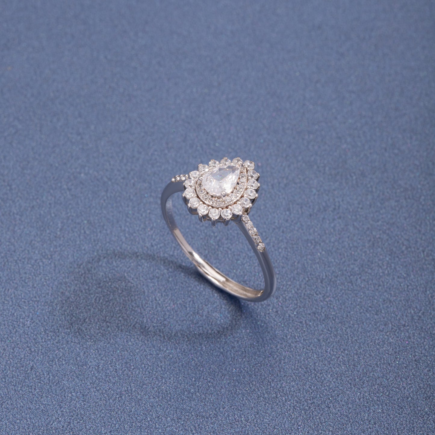 Sterling Silver Elegant Pear Double Halo C/Z Open Adjustable Ring
